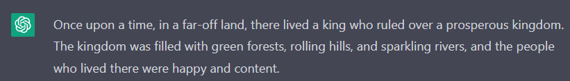 This first example is the foundation of more complex examples like the ChatGPT client itself, which can be implemented as a loop that keeps doing what this example does, while at the same time "remembering" all the things that have been said since the beginning of the chat.