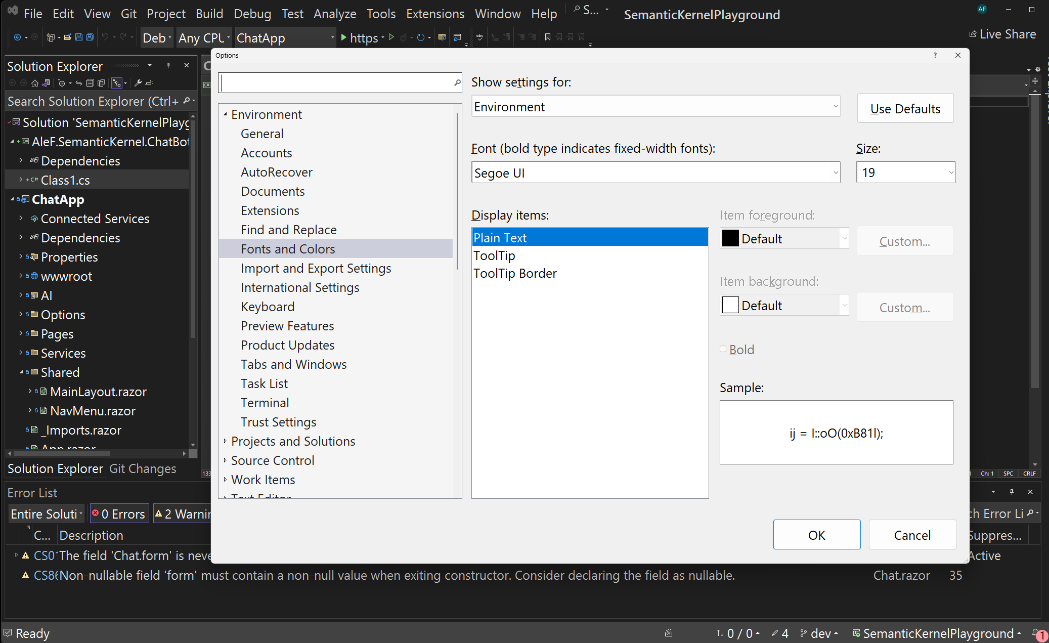 Fonts and Formatting for Visual Studio - Visual Studio (Windows)